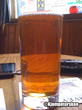 På gjestefat i puben Charles Dickens i London. Godt humlet ale, men savner litt smak i denne. En ganske ordinær bitter, med andre ord. Og det er greit nok på en engelsk pub.