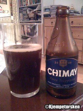 Litt skitteaktig farge. Tåkete og med sedimenter flytende rundt. Ristet jeg flasken før jeg trakk den opp? Kraftig og god skarphet med distinkt alkoholsmak. ABV: 9 Style: Belgian Brewery S.A. Bières de Chimay Region Belgium
