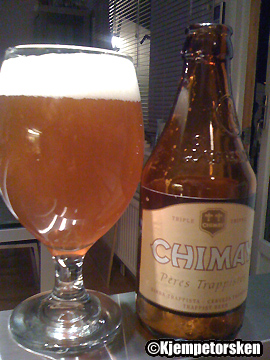 Helt nydelig. Kraftig smak av krydder med en sursøtlig ettersmak. Noe av det bedre Belgia kan by på! ABV: 8 Style: Tripel Brewery S.A. Bières de Chimay Region Belgium