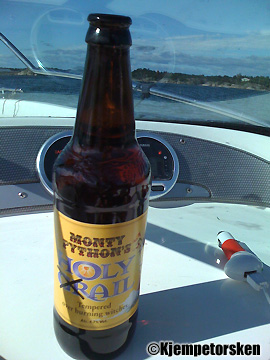 Monty Python’s Holy Grail er gyllen og fin i fargen. Litt tåkete slik Bittere ofte er. Innbydende. God og syrlig ale med en fin karamellsmak. «Temperert over brennende hekser».
