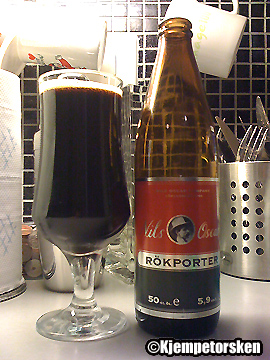 Mørk, mørk brun i glasset med en sparsom skumtopp. Lukter peis og brent korn. Dette er en nydelig mørk porter med skikkelig røksmak. Ikke for mye, men en fin søtaktig peissmak. Perfekt balanse.