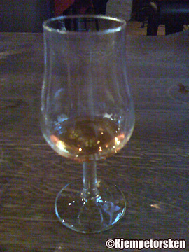 Lys i fargen og helt uten skum. Alkoholen lager fine avsetninger på glasset. Lukten er sterk, men samtidig svært innbydende. Smak: vanilje, menthol, sjokolade, nøtter, bær, frukt etc etc etc. Masse smak! Denne var faktisk over all forventning.