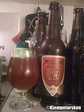 Her blir det for mye chili etter min smak. Jeg har smakt pilsnervarianter med chili og der passer faktisk chilien bedre inn. Når den konkurrerer med den allerede kraftige tripel-smaken, tar det litt overhånd i min gane.