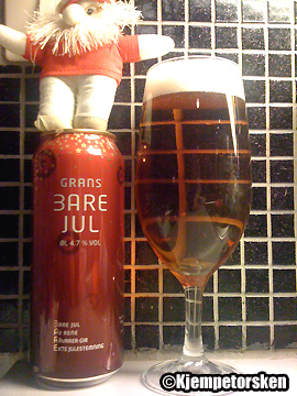 Pen lys farge, nesten så lys som pils. Litt skum. Lukter kandissukker, nesten litt belgisk. Smak av eple og gjær. Smaken er også litt belgisk, eller er den bare dårlig gjæret? Ikke noe jeg forbinder med juleøl.