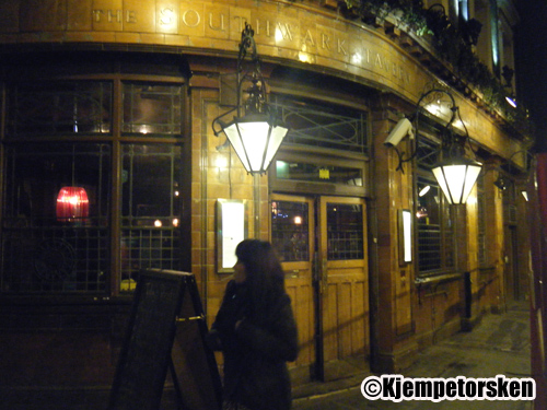 En flott pub nær sentrum, litt sør for Themsen. Ganske fullt på en mandagskveld(!). Puben har en rikholdig matmeny og det er mange som spiser denne dagen. En underetasje huser også mange gjester, men vi holder oss på gateplan. Ølutvalget gjør sitt til at vi blir sittende lenger enn planlagt. Et ungt par står for serveringen, og er ikke spesielt imøtekommende. Med sin manglende entusiasme får vi nesten håpe at de ikke er pubens innehavere.
