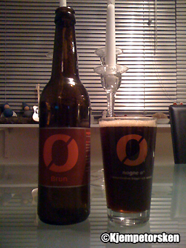 Fra etiketten: Brun er en upasteurisert og ufiltrert belgisk type ale. Øl fra Nøgne Ø er flaskegjæret, noe som medfører at man bør behandle flasken med varsomhet før servering, slik at sedimentene ikke forstyrres. Brun har en fin fruktighet som er balansert opp mot god maltsødme. Anbefalt serveringstemperatur 8 grader C. La det bygge en skumtopp. Vi anbefaler Brun som en god kompanjong til vellagrede oster, alternativt ulike kjøttretter.