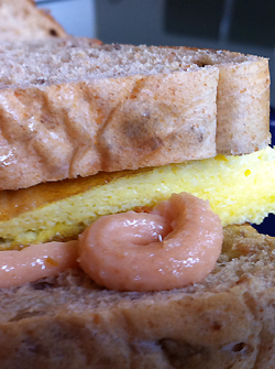 Gourmétvarianten (som er avbildet) av denne retten er med eggerøre istedet for speilegg og serveres som en sandwich med brød både under og over. Dette krever litt mer jobbing ettersom eggene må vispes på forhånd (eller i stekepannen).