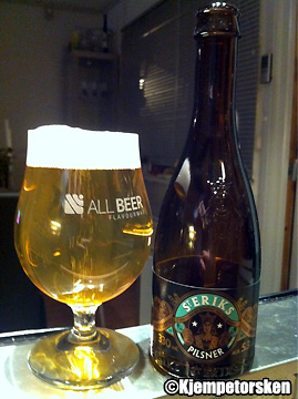 Lys i glasset med et kritthvitt skum. Skummet etterlater seg skumavsetning nedover glasset. Herlig humle. Søt aroma. Lukter også litt metallisk. Bittersøt i ettersmaken, men totalt sett veldig søt. God pils!