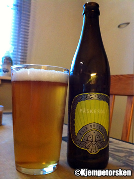 Dette er imidlertid et deilig og mildt påskeøl av typen dortmunder/helles. Lys og litt tåkete farge med en lekker skumtopp. Går sannsynligvis godt til det meste av mat og kan meget godt nytes alene også. Ægir sier selv: