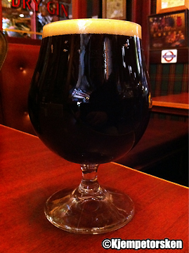 helt mørk brun farge. Finmasket skum. Lukter ikke mye, men man får et hint av sitrus og mørke frukter. Smaken er mild og ren. Den har en lett røksmak som gir den et ganske kraftig preg sammen med den fine maltsmaken. Deilig.