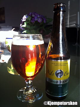Jeg var litt «slem» mot Nils Oscars God Lager da jeg anmeldte den. Som jeg tidligere har nevnt har jeg drukket mye godt fra Nils Oscar, men her kommer min favoritt så langt. Jeg er jo spesielt glad i IPAer, og her har Nils Oscar laget en nydelig variant etter min gane! En nydelig bronsefarget øl med et tynt, hvitt skumlag. Søtlig appelsinduft, og en herlig fyldig smak som er smekkfull av humle. En nytelse å drikke!