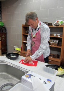 På kurset lærte vi å lage Kimchi fra bunnen av. Kålen skal først ligge i saltvann i 5-6 timer for å få den rette konsistensen. Denne skal så deles opp på langs. Deretter lager man en mix av knust chili, hvitløk, fiskesaus og endel andre kryddere. Denne mixen skal så blandes inn i kålen. Man løfter opp ett og ett blad av kålen og «smører» chilipastaen mellom kålbladene. Til slutt bretter man det største bladet rundt kålen som et slags belte for å holde ingrediensene på plass. Dette legges deretter i en beholder (tradisjonelt har man brukt leirkrukker til dette i Korea. Kimchien skal helst stå et par uker før den er ferdig. Deretter kan den stå i inntil to år, ifølge vår lærer. Hun sa at «Kimchi blir aldri dårlig»! Preservasjonen sikres ved chili, hvitløk og saltvannet fra fermenteringen. Smaken vil imidlertid utvikle seg over tid (som med øl!) og etter et par måneder er Kimchien merkbart «surere» enn når den er «fersk». Koreanerne foretrekker å spise den når den er rundt 2 uker gammel, og de har alltid Kimchi klart til servering. I ethvert koreansk hjem finnes det nemlig to kjøleskap: et vanlig kjøleskap og et Kimchi-kjøleskap.
