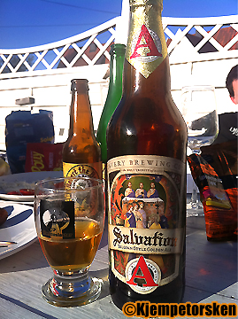 Avery sier: The success of HOG HEAVEN and THE REVEREND clearly demonstrates that beer drinkers are willing to embrace «BIGGER» beers. In the fall of 2001, we decided that a lighter BIG BEER would complement its darker colored predecessors. Salvation has luscious apricot and peach aromas delicately interwoven with spicy suggestions of nutmeg and cinnamon. This heavenly soft, champagne-like elixir is cellarable for 3 years.