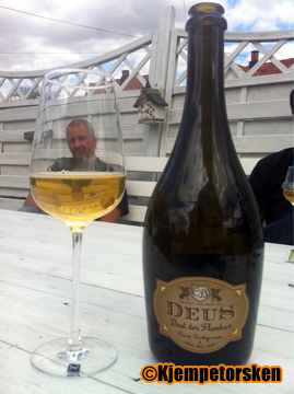 Vi startet denne smakingen med en «champis», Deus Brut des Flandres. En fyldig og frisk øl med tydelig vinøs tone. Lys i glasset med et typisk champagneskum. Referansen til champagne er veldig tydelig. Det skyldes ikke bare flasken og champagnekorken. Ved siden av å være veldig vinøs har denne en tørr champagne-ettersmak.