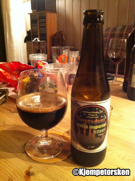 Litt tyktflytende og helt sort i fargen. Lysebrunt skum som forsvinner fort. Kraftig lukt av brent malt og en søtlig aroma av karamell og havre. Fantastisk fyldig og kraftig smak. Smak av kaffe, sjokolade og kakao. Spesiell smak av søt kaffe og mørkt sukker. En deilig munnfølelse med et fint alkoholstikk.