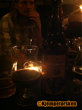 Jeg vet ikke hvordan de får det til, men dette smaker ren sjokolade. Helt nydelig! Den er søt god og man kjenner nesten ikke den høye alkoholprosenten i denne (11%!). Ren, søt melkesjokolade som fyller munnen med smaksbomber, takket være den fyldige og kraftige smaken. Stor flaske som ble delt i godt selskap på Amundsen Bryggeri & Spiseri.