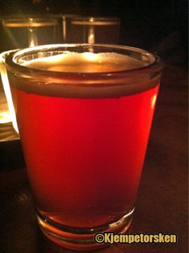 Fra Trondhjem Mikrobryggeris smakssett. Flott, lys kobberaktig farge med et fint offwhite skumlag. I typedefinisjonen for Amber ale står det at denne øltypen skal ha en lav til moderat humlearoma. Her er det imidlertid en ganske humlekraftig aroma som slår mot meg. Denne er frisk og fin i smaken, men med en tørr og humlebitter ettersmak.