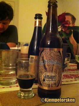 Amager Bryghus sier: Allerede når den hældes op i glasset, fornemmes det med det samme, at Hr. Frederiksen er en herre med både potens og stor personlighed. Begsort som Hr. Frederiksens humor er denne ”Imperial Stout” efter amerikansk forbillede med et tæt og cremet, lysebrunt skum, som efterlader pikante blonder i glasset, efterhånden som det modstræbende lægger sig. Vi indrømmer det gerne – vi er gået amok med maltene i denne øl, hele 8 forskellige har vi brugt, og det er de sorte og brændte, der giver øllet både dets farve og den nærmest ekstreme fylde – dette er nærmest et fudbyrdet måltid på flaske. Også bitterhed leverer de brændte malte sekunderet af amerikansk Centennial humle. Åh jo, Hr. Frederiksen er en oplevelse at byde op til dans, han bør dog nydes langsomt, men så kan han til gengæld også holde en hel aften, hvor man kan varme sig ved hans alkohol og udfordrende charme.