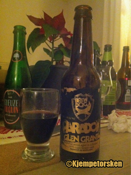 Ølet var ca 3 år gammelt da vi drakk det og i motsetning til den sedvanlige skarpe whiskysmaken var det her en svært avrundet smak. Rund og mild med innslag av kaffe, sjokolade og vanilje! Silkemyk som milkshake og caffelatte-aktig på paletten. Fatlagring er vanskelig, men her er det en tilnærmet perfekt integrasjon av elementene fra fatet (tresmak og whisky) og den kraftige stouten. Det er bare å gratulere Brewdog med en fantastisk kombinasjon! Skulle ønske jeg hadde kjelleren full av disse!
