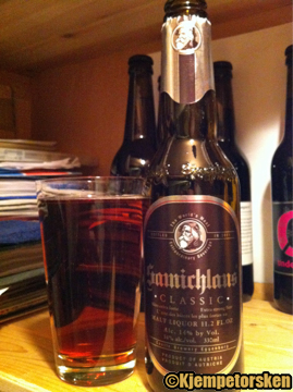 Samichlaus brygges kun én gang i året på Brauerei Schloss Eggenberg i Østerrike. Det er 6.desember og ølet blir deretter lagret på fat i 10 måneder før det flaskes. Med sine 14% er den et utmerket øl å lagre, og den vil nok få en mer avrundet tone enn denne ferske flasken som jeg drakk.