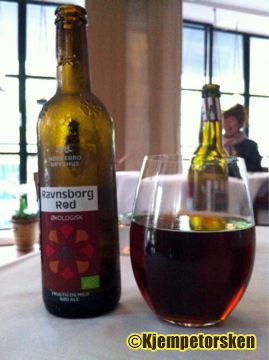 Til en av rettene ble vi anbefalt denne Red alen fra Nørrebro. I likhet med Mikkellers øl brygget for restauranten er også dette en mild, men smaksrik øl. Kraftig nok til å stå på egne ben og mild nok til å være en fin følgesvenn til mat. Bitterheten er avmålt og den karamellaktige maltsødmen er mest tilstede i smaken. Søte, røde bær og en frisk blomsteraktig munnfølelse kompletterer ølet.
